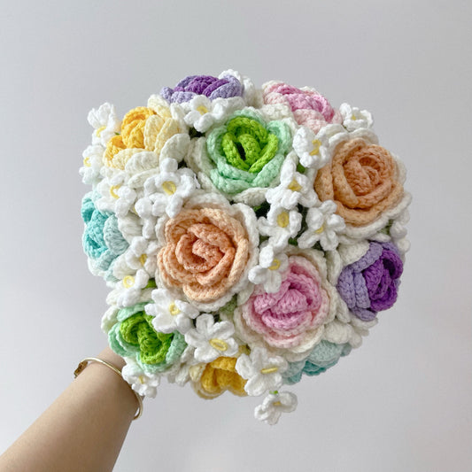 [first bloom] sweet spring - handicroft special roses crochet flower bouquet .⋆。🌸࿔˚⋅