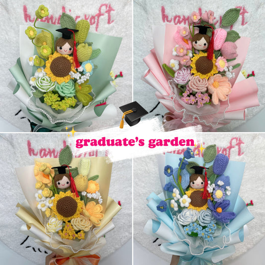 [AVAIL IN 6 COLOURS] graduate's garden - graduation special crochet flower bouquet ₊˚ʚ 💐 ₊˚✧ ゚.
