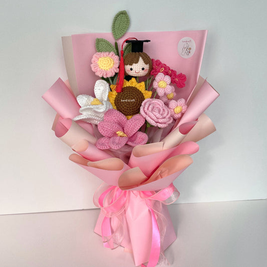 [NEW] loopy chonks - graduation special crochet flower bouquet 🩷🎓🎀