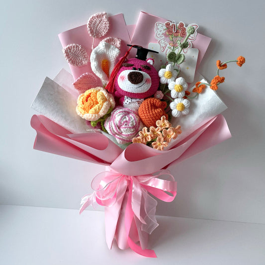 [NEW] lotso chonks - graduation special crochet flower bouquet 🩷🎓🎀