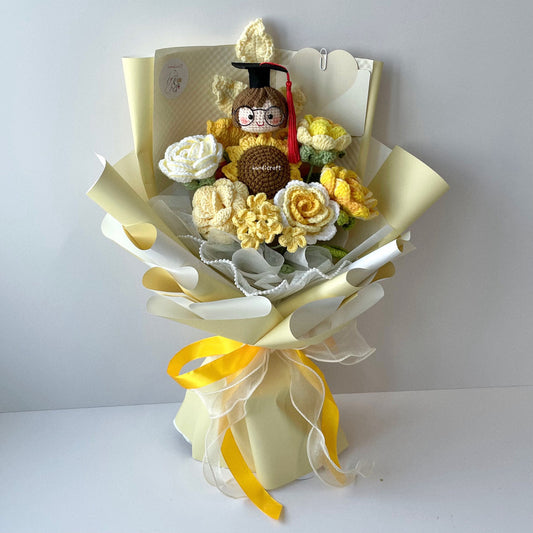 [AVAIL IN 7 COLOURS] sunny chapter - graduation special crochet flower bouquet ✧˚ ༘ ⋆。🌻˚