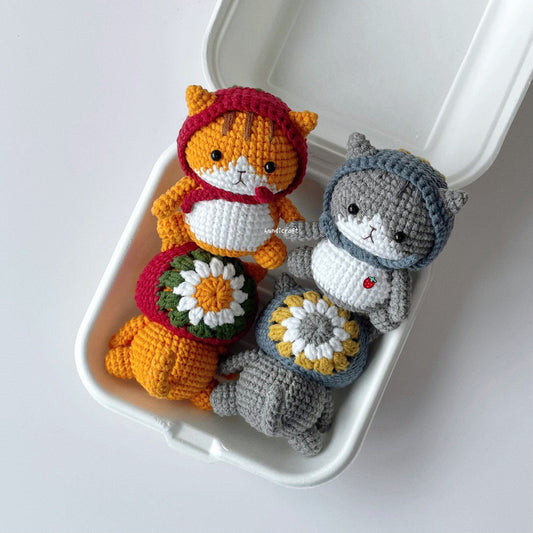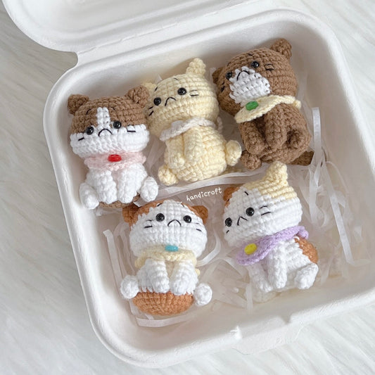 sold out (⊃ ˃̣̣̥ ᴖ ˂̣̣̥ ⊂)crochet granny hat cat keychain ≽^•⩊•^≼⋆🐾°