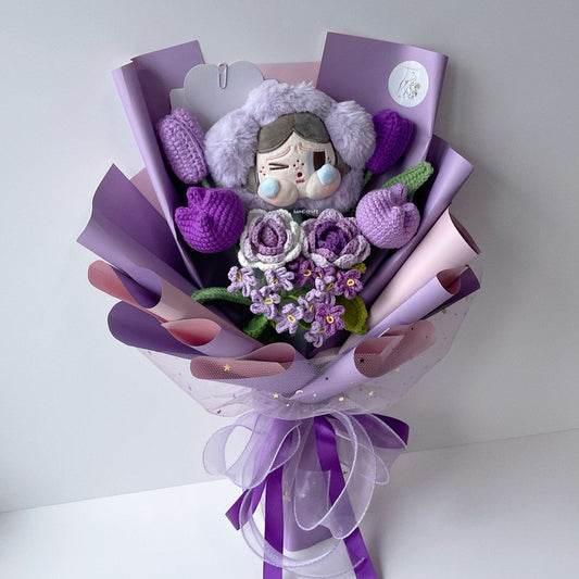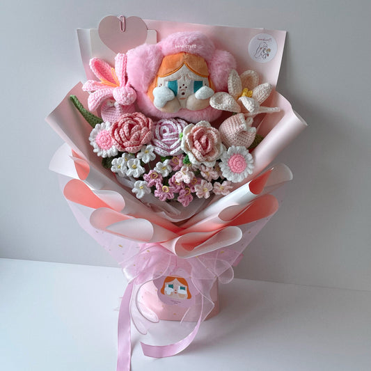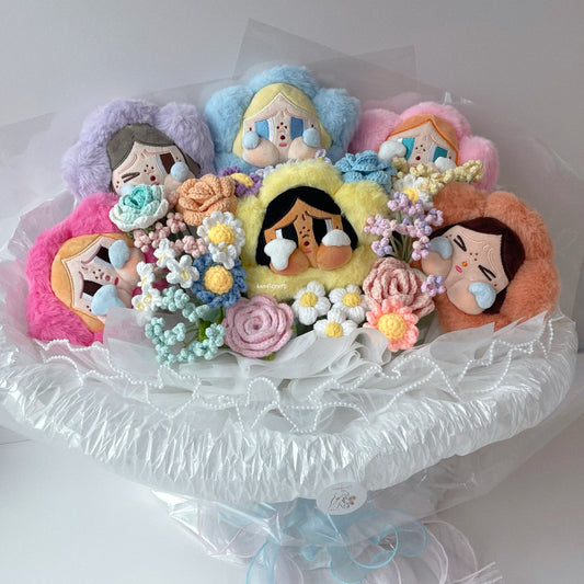 [AVAIL IN 6 COLOURS] crybaby's lover - pop mart sad club crybaby flower plush crochet bouquet (⊃ ˃̣̣̥ ᴖ ˂̣̣̥ ⊂)🍼˚ ༘ ⋆💐₊˚⊹ ♡