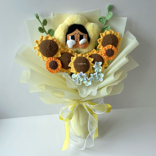 [AVAIL IN 6 COLOURS] crybaby's sunshine - pop mart sad club crybaby flower plush crochet bouquet (⊃ ˃̣̣̥ ᴖ ˂̣̣̥ ⊂)🍼˚ ༘ ⋆💐₊˚⊹ ♡