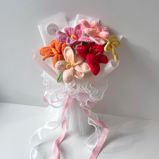 [AVAIL IN 3 COLOURS] glow of lilies - crochet flower bouquet ❤️₊˚ 🍒・₊✧
