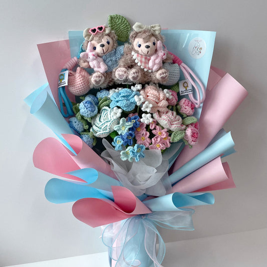 [FREE EXPRESS DELIVERY] bear-y in love - shelliemay crochet flower bouquet 🩵🧸ྀི🩷