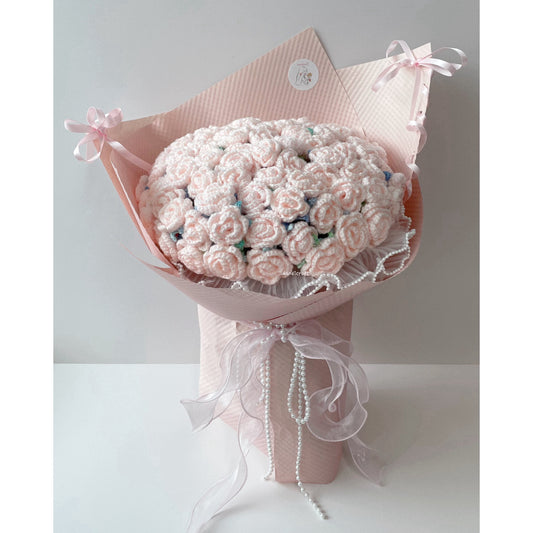 sold out (⊃ ˃̣̣̥ ᴖ ˂̣̣̥ ⊂)[FREE EXPRESS DELIVERY] petals, pearls & bows - handicroft special roses pastel crochet flower bouquet ✧˚.🎀