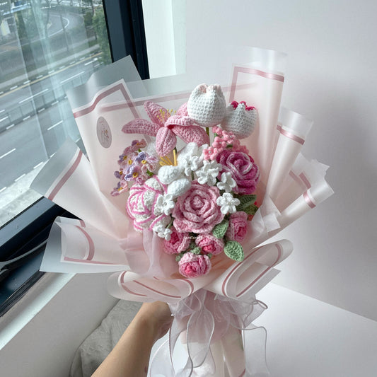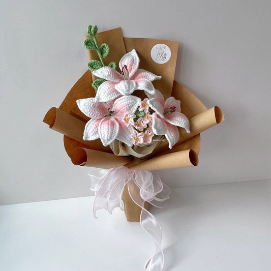 [CHOOSE WRAPPING COLOUR] lily's love in bloom - crochet flower bouquet ⋆.🩷💐