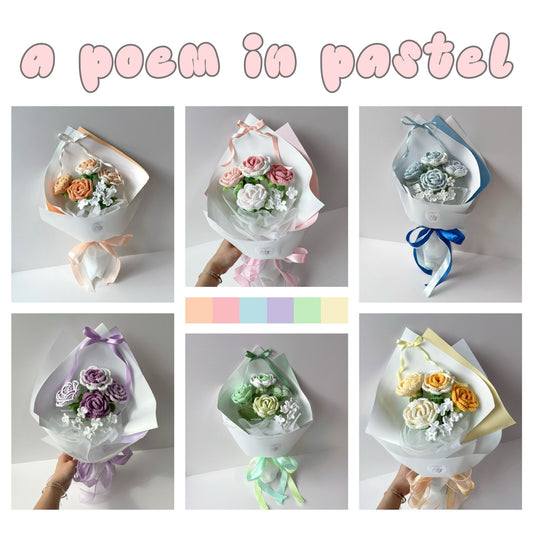 [AVAIL IN 6 COLOURS] a poem in pastel - handicroft special roses crochet flower bouquet ‧₊˚ 🌹