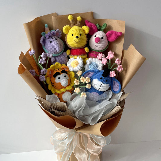 [LIMITED TIME SALE] pooh & pals - winnie the pooh family amigurumi crochet flower bouquet ʕ •́؈•̀)🍯🧸