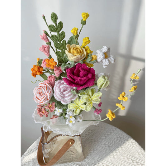 [FREE EXPRESS DELIVERY] vase of rosy - crochet flower bouquet vase arrangement ₊♡₊˚ 🌹・₊✧