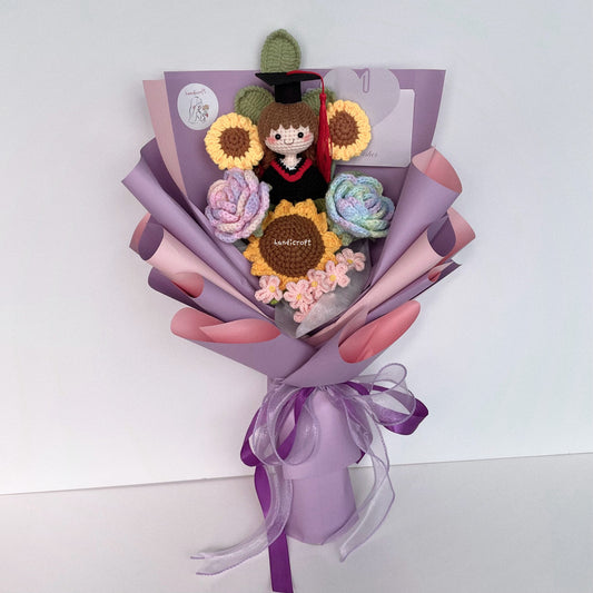 [CHOOSE WRAPPING COLOUR] mixed petal triumph - graduation special crochet flower bouquet 🌸‧₊˚ ☁️⋅💜𓂃