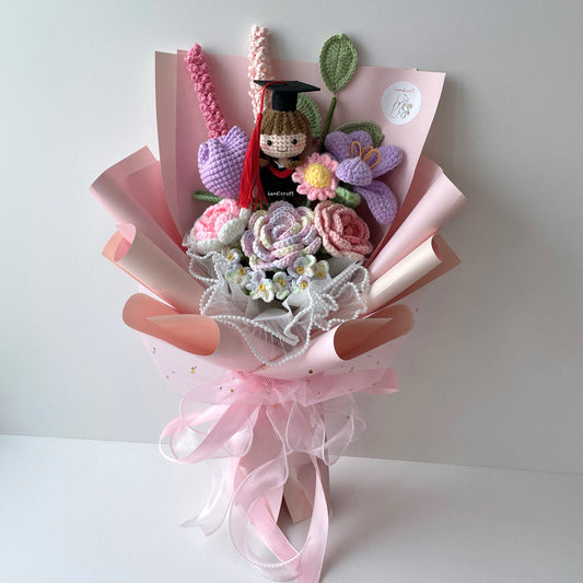 [AVAIL IN 7 COLOURS] dreamie moments - graduation special crochet flower bouquet ˚.🎀༘⋆