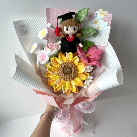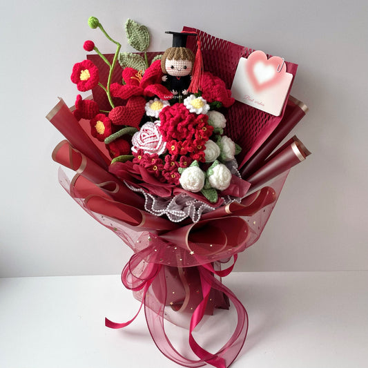 🎉 celebrate the spirit of graduation with our fabulous collection of handmade crochet flower bouquets — keepsakes that embody the memories and joy of this special milestone ♡