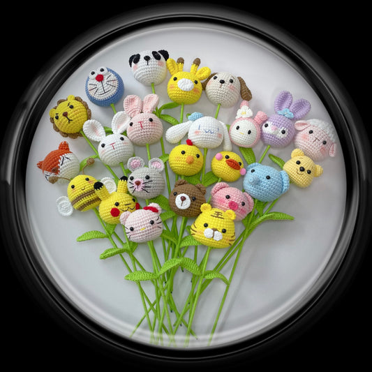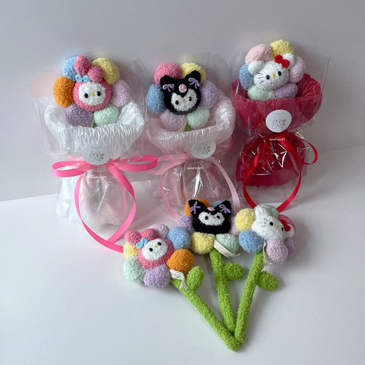 sanrio character - single stalk crochet flower bouquet ₊໒꒰ྀིᵔ ᵕ ᵔ ꒱ྀི১🎀