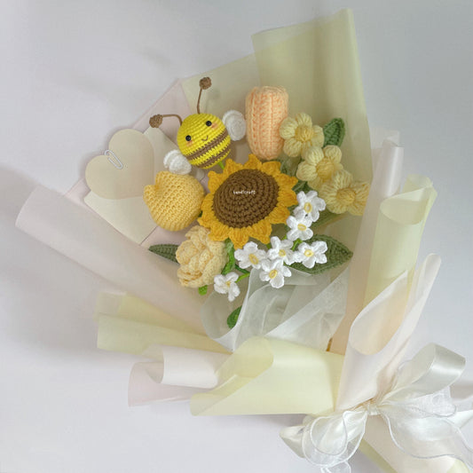 bee-yond blooms - crochet flower bouquet ₊˚✧🌻🐝₊˚⊹。.