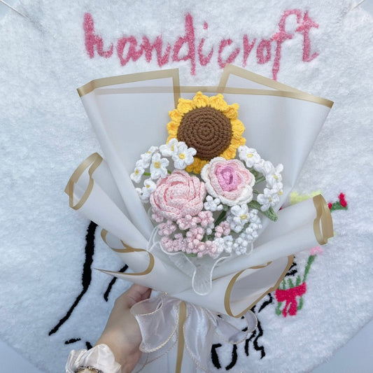 sunflower blush - pink & white crochet flower bouquet 🌻𓍢ִ໋🌷͙֒♡