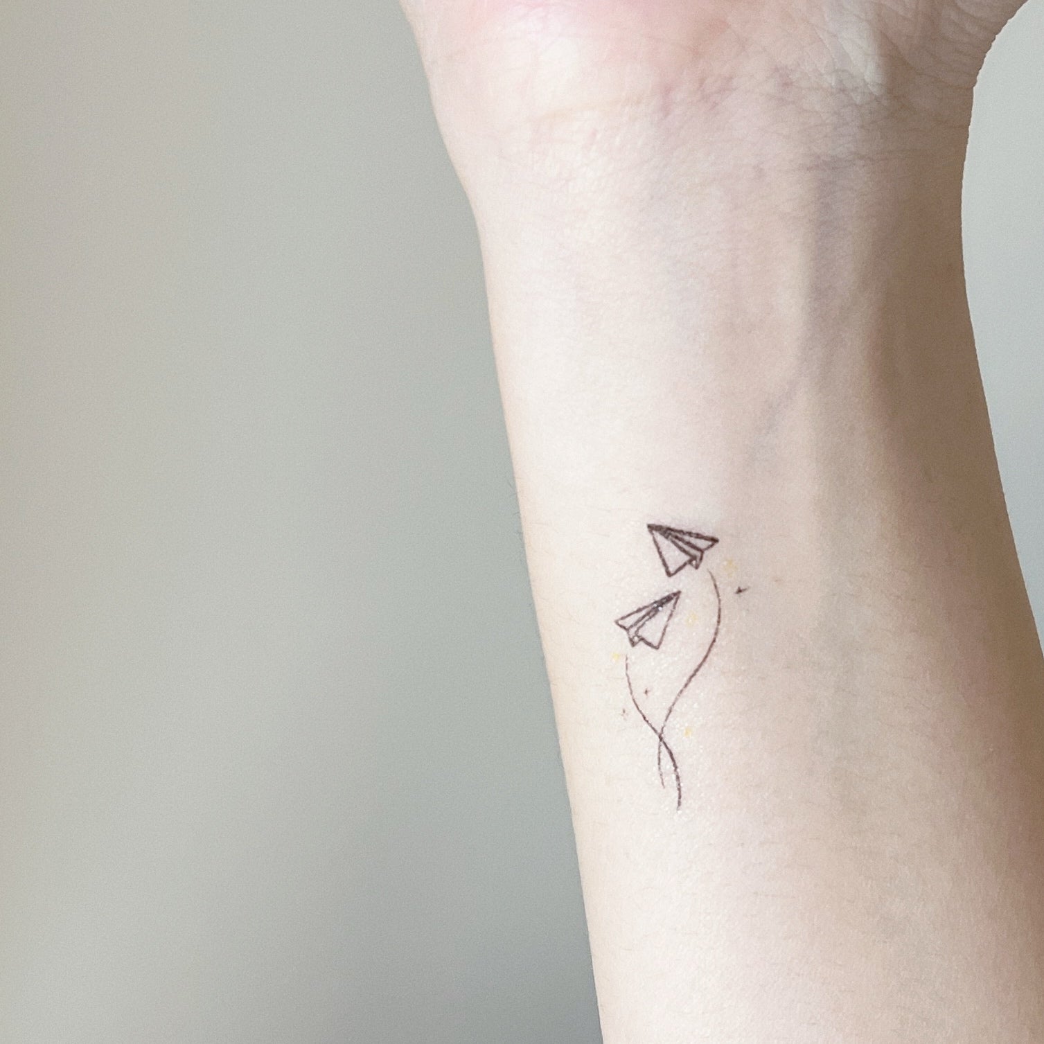 2 paper airplanes temporary tattoo sticker in black inspired by out of the woods by taylor swift on her 1989 album