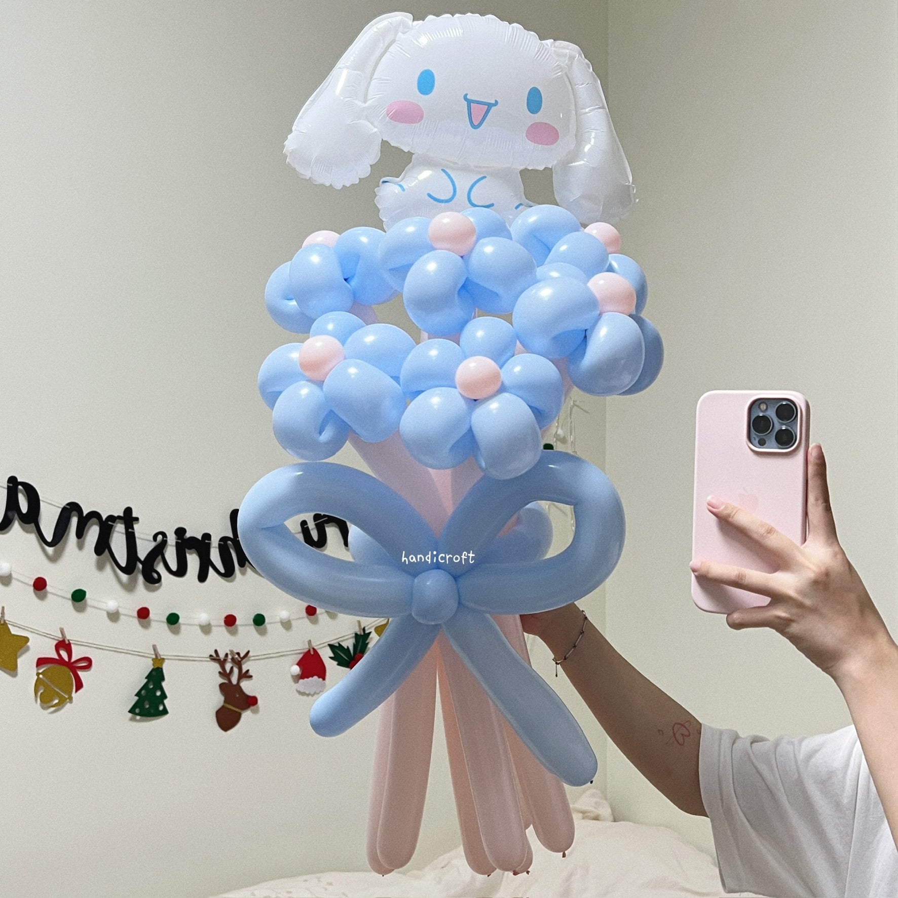 - cinnamoroll theme flower balloon bouquet in blue and pink