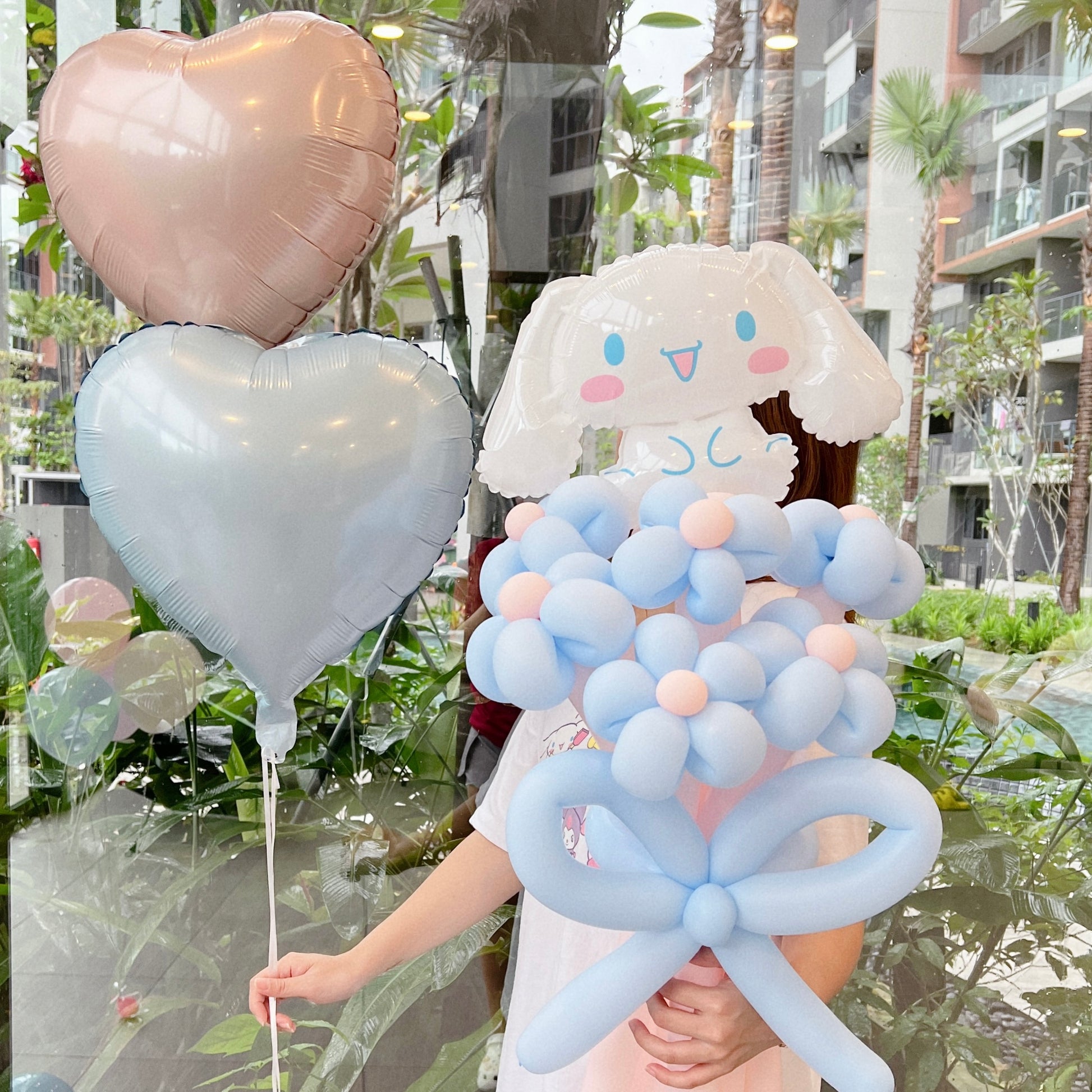 delight in the cuteness of our cinnamoroll-themed flower balloon set! perfect for birthdays, special occasions or photoshoots, this flower balloon bouquet is a charming blend of soft pastel balloons, capturing the whimsical essence of the character. topped with an adorable helium balloon, it’s the ultimate prop for any cinnamoroll lover. add a touch of cuteness to your celebrations and create picture-perfect memories with this enchanting bouquet ໒꒰ྀིᵔ ᵕ ᵔ ꒱ྀི১🎀