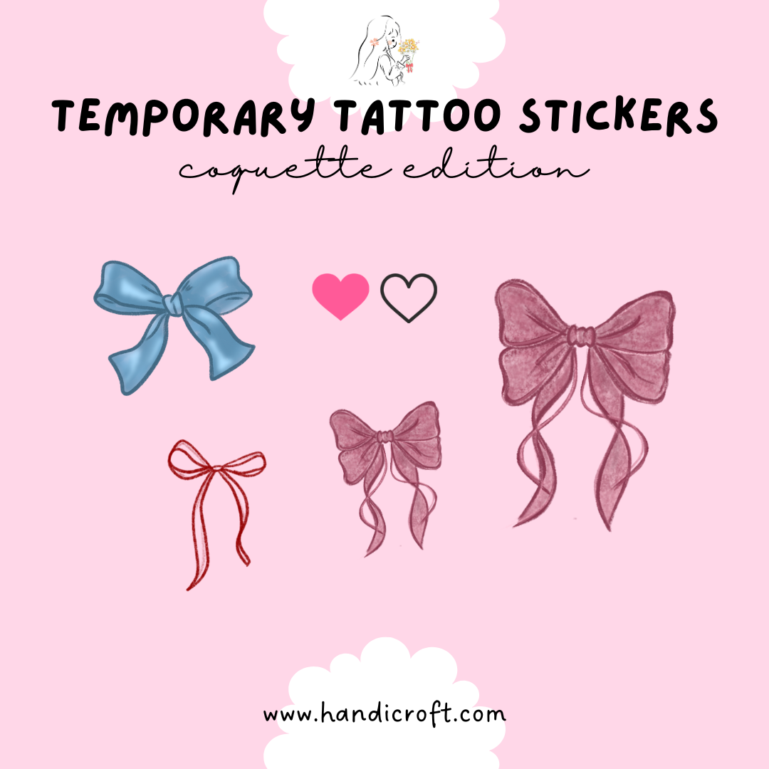 a curated bundle of 5 temporary tattoo stickers, in trend with the coquette aesthetic 🎀