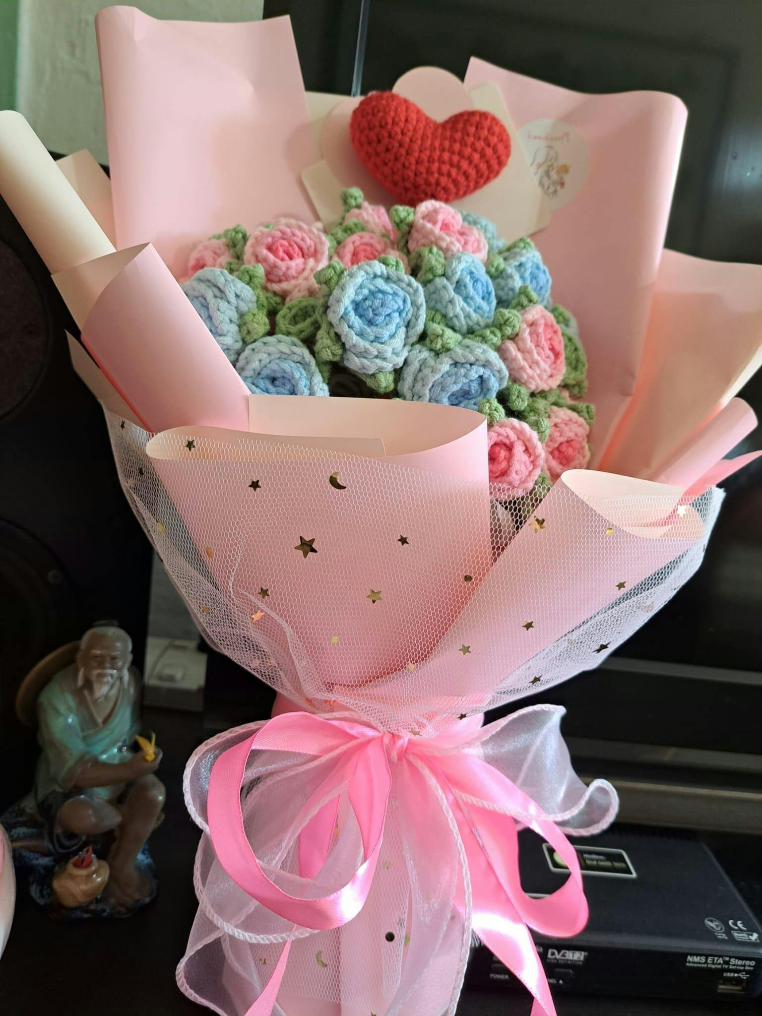 whispering the soft elegance of a blooming garden, garden's blush is a handmade crochet bouquet of delicate pink mini roses. this everlasting bouquet is perfect for all occasions — whether it’s a birthday, graduation, farewell, anniversary or just a thoughtful gift to brighten someone's day. small in size but big on sweetness, these handmade roses will never fade, making them a keepsake that lasts forever ♪⋆₊˚🍥⑅˚*